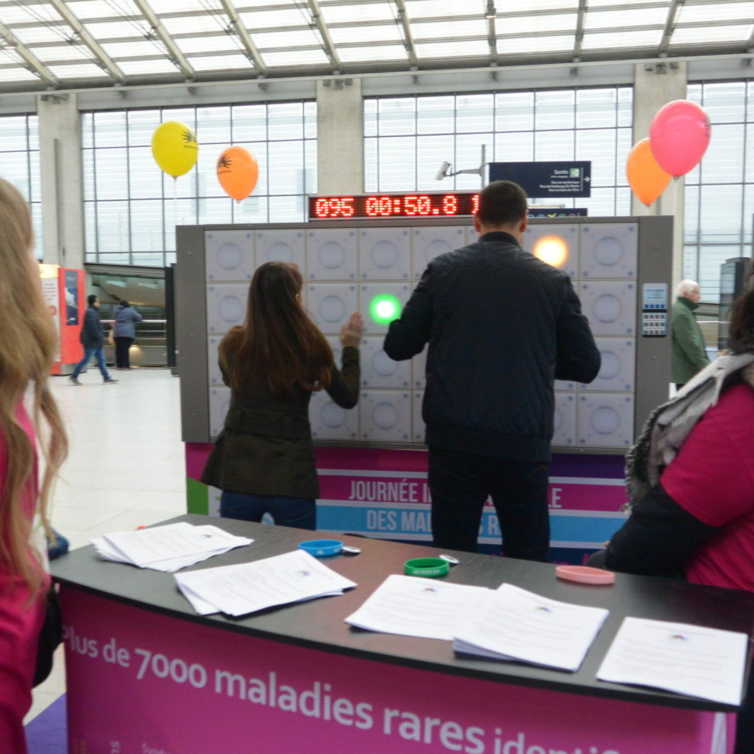 Le 28 février dernier se déroulait la Journée Internationale des Maladies Rares. À cette occasion, la filière Filfoie s’est joint à dix autres Filières de Santé Maladies Rares pour organiser un grand évènement nationale pour sensibiliser le grand public à ce sujet. Nous étions donc présent dans 4 gares françaises (Paris Nord, Paris Saint Lazare, Lille Flandres, Montpellier Saint Roch) tout au long de la journée avec diverses animations (quiz, fresques, concerts, mur digital), ainsi que sur les réseaux sociaux avec les hashtag #RareDiseaseDay et #ShowYourRare.
