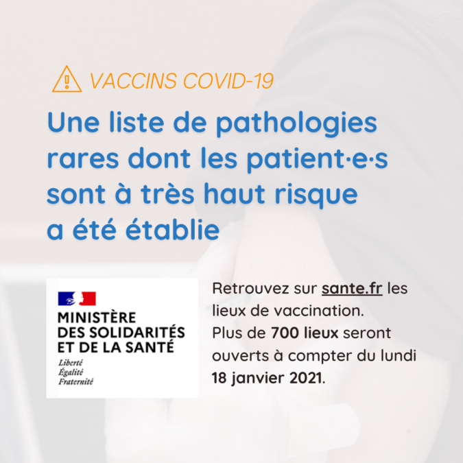 À l’heure actuelle, le ministère des Solidarités et de la Santé et la Haute Autorité de Santé n’ont pas formulé de consigne officielle spécifique vis à vis des patient·e·s atteint·e·s de maladies rares. Il n’y a pas d’éléments qui prouve que l’infection s’attrape plus facilement. Les consignes sont les mêmes que pour le grand public.